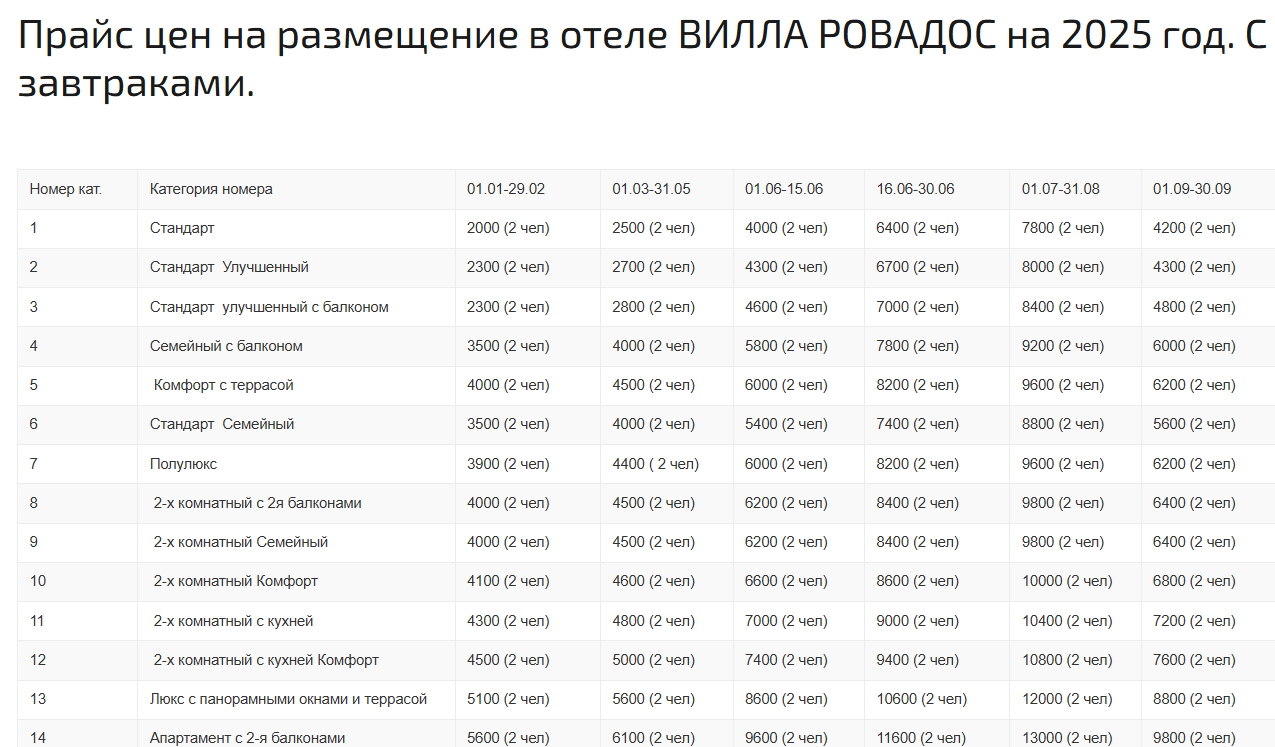 Круглогодичный курортный отель «ВИЛЛА РОВАДОС»