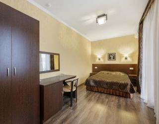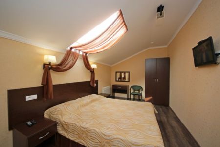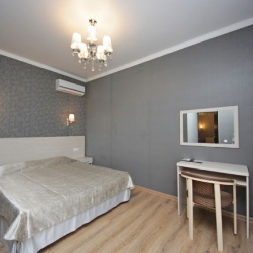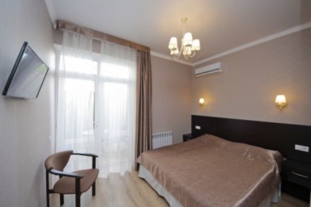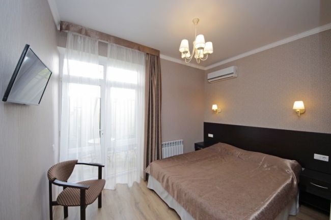Трехэтажный корпус гостевого дома разместился на благоустроенной территории на тихой зеленой улице курорта. В распоряжении гостей номера разных категорий комфорта, некоторые из которых оснащены собственной мини-кухней. В номерах есть вся необходимая техника: сплит-система, телевизор, холодильник, в ванных комнатах гостей ожидают наборы косметических принадлежностей.