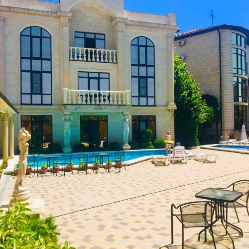 На территории гостевого дома работают ресторан и бар с напитками, для любителей шашлыков предусмотрена мангальная зона. Во внутреннем дворике два открытых бассейна, один их них с подогревом, расслабиться после насыщенного дня можно в сауне, а вечерний досуг скрасит игра в бильярд или настольный теннис. В гостевом доме регулярно проходят развлекательные мероприятия с участием аниматоров для взрослых и детей. Также для юных гостей организована игровая площадка и детская комната.